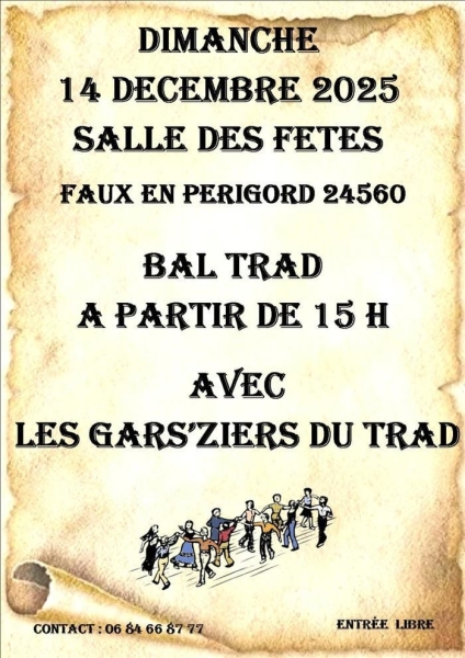 Date : Dimanche 14/12/2025 Horaires : 15h à 19h Tarifs : Entrée libre Adresse de l'événement : SALLE DES FÊTES 24300 ABJAT SUR BANDIAT Informations complémentaires : Animation : Les Garsoeziers du Trad. Danses pratiquées : Danse folklorique Référence de l'annonce : 56198 call06 84 66 87 77