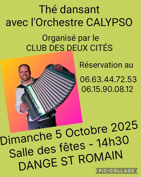 Date : Dimanche 05/10/2025 Horaires : 14h30 Tarifs : 11€ Organisateur : CLUB DES DEUX CITÉS Adresse de l'événement : SALLE DES FÊTES PLACE DU CHAI 86430 ADRIERS Informations complémentaires : Animation : Orchestre Calypso. Danses pratiquées : Danses de salon, Danses en ligne, Danses rétro Référence de l'annonce : 52001 call06 15 90 08 12call06 63 44 72 53