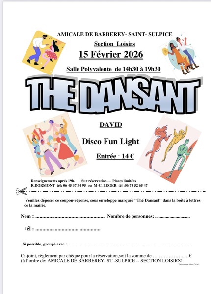 BARBEREY ST SULPICE (10600) Type : Après-midi dansant