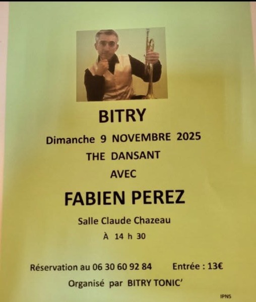 Date : Dimanche 09/11/2025 Horaires : 14h30 Tarifs : 13€ Organisateur : BITRY TONIC' Adresse de l'événement : SALLE CLAUDE CHAZEAU 58310 BITRY Informations complémentaires : Animation : Orchestre Fabien Perez. Danses pratiquées : Danses de salon, Danses en ligne, Danses rétro Référence de l'annonce : 55090 call06 30 60 92 84