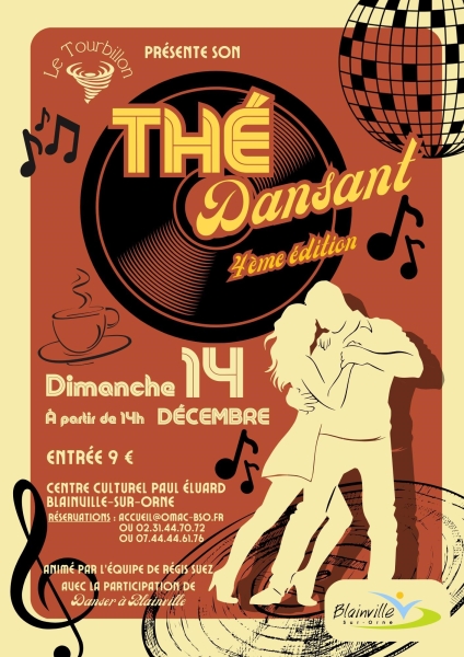Date : Dimanche 14/12/2025 Horaires : 14h à 17h Tarifs : 9€ Organisateur : LE TOURBILLON Adresse de l'événement : ESPACE CULTUREL PAUL-ÉLUARD RUE DU STADE 14550 BLAINVILLE SUR ORNE Informations complémentaires : Animation : équipe de Régis Suarez, avec la participation de l'association Danser à Blainville. Réservation obligatoire avant le 12 décembre. Quatrième édition. Danses pratiquées : Danses de salon, Danses en ligne, Danses rétro Référence de l'annonce : 56749 call02 31 44 70 72call07 44 44 61 76