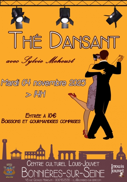 Date : Mardi 04/11/2025 Horaires : 14h Tarifs : 10€ gourmandises comprises Organisateur : CENTRE CULTUREL LOUIS JOUVET Adresse de l'événement : CENTRE CULTUREL LOUIS JOUVET 45 RUE GEORGES HERREWYN 78270 BONNIERES SUR SEINE Informations complémentaires : Animation : Sylvie Meheust. Danses : valse, tango, rock et disco. Boissons et gourmandises comprises. Thème paillettes conseillé?: robes à paillettes et n?uds papillons. Danses pratiquées : Danses de salon, Danses en ligne, Danses rétro, Disco en ligne, Rock, Tango, Valse Référence de l'annonce : 54143 call01 30 93 25 55call01 30 93 26 55