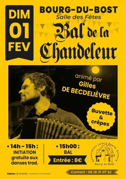 Date : Dimanche 01/02/2026 Horaires : 14h à 17h30 Tarifs : 8€ Organisateur : ASSOCIATION LOISIRS SPORTS CULTURE BOURG DU BOST Adresse de l'événement : SALLE DES FÊTES 396 ROUTE DE LA RÉPUBLIQUE 24600 BOURG DU BOST Informations complémentaires : Animation : Gilles de Becdelièvre. Initiation gratuite aux danses traditionnelles de 14h à 15h, bal à 15h30. Buvette et vente de crêpes. Danses pratiquées : Danse folklorique Référence de l'annonce : 61265 call06 18 31 07 52