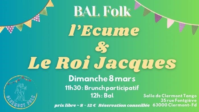 Date : Dimanche 08/03/2026 Horaires : 11h30 à 15h30 Tarifs : Entrée à prix libre, 8 à 12€ conseillé Adresse de l'événement : SALLE CLERMONT TANGO 35 RUE FONTGIÈVE 63000 CLERMONT FERRAND Informations complémentaires : Animation : L'Écume & Le Roi Jacques. Brunch participatif, apportez vos mets à partager. Réservation recommandée. Danses pratiquées : Danse folklorique Référence de l'annonce : 63888