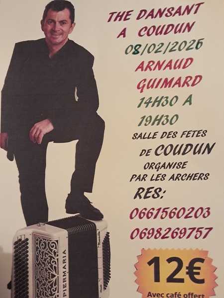 Date : Dimanche 08/02/2026 Horaires : 14h30 à 19h30 Tarifs : 12€ Organisateur : LES ARCHERS Adresse de l'événement : SALLE DES FÊTES 60150 COUDUN Informations complémentaires : Animation : Orchestre Arnaud Guimard. Style musette. Café offert. Danses pratiquées : Danses de salon, Danses en ligne (Line dance), Danses rétro Référence de l'annonce : 62074 call06 61 56 02 03call06 98 26 97 57