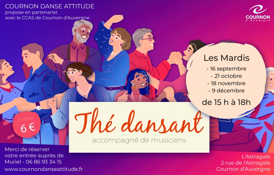 Date : Mardi 09/12/2025 Horaires : 15h à 18h Tarifs : 6€ Organisateur : COURNON DANSE ATTITUDE Adresse de l'événement : SALLE DE L'ASTRAGALE 2 RUE DE L'ASTRAGALE 63800 COURNON D AUVERGNE Informations complémentaires : En partenariat avec le CCAS de la Ville de Cournon-d'Auvergne. Animation par des musiciens. Paiement en espèces (prévoir l'appoint) ou par chèque. Réservation conseillée. Danses pratiquées : Danses de salon, Danses en ligne, Danses rétro Référence de l'annonce : 53303 call06 98 87 46 46call06 86 93 34 15
