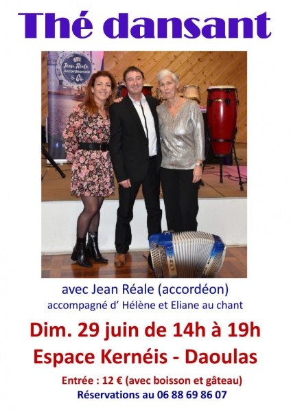 Date : 29/06/2025 (Événement passé) Horaires : de 14h à 19h Tarifs : 12€ (comprend une part de gâteau et une boisson) Organisateur : ASSOCIATION MADE BY DAOUL Adresse de l'événement : SALLE KERNEIS 1 ROUTE DE LA GARE 29460 DAOULAS Informations complémentaires : Animation : Jean Réale accompagné de ses chanteuses Hélène et Éliane. Danses pratiquées : Danses de salon, Danses en ligne, Danses rétro Référence de l'annonce : 45689 call06 88 69 86 07