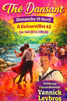Date : Dimanche 19/04/2026 Horaires : 14h30 à 19h30 Adresse de l'événement : SALLE DES FÊTES 42380 ESTIVAREILLES Informations complémentaires : Animation : Orchestre Yannick Leybros. Danses pratiquées : Danses de salon, Danses en ligne (Line dance), Danses rétro Référence de l'annonce : 65813