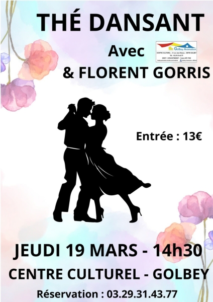 Date : Jeudi 19/03/2026 Horaires : 14h30 à 18h30 Tarifs : 13€ Organisateur : GOLBEY ANIMATION Adresse de l'événement : CENTRE CULTUREL 2 RUE JEAN-BOSSU 88190 GOLBEY Informations complémentaires : Animation : Orchestre Florent Gorris. Une pâtisserie offerte. Réservation conseillée. Danses pratiquées : Danses de salon, Danses en ligne (Line dance), Danses rétro Référence de l'annonce : 64532 call03 29 31 43 77