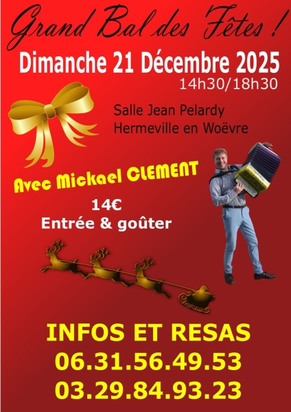 Date : Dimanche 21/12/2025 Horaires : 14h30 à 18h30 Tarifs : 14€ Organisateur : SENSATION ANIMATIONS Adresse de l'événement : SALLE JEAN PELARDY 55400 HERMEVILLE EN WOEVRE Informations complémentaires : Animation : Mickaël Clément. Goûter à 16h30. Entrée et goûter inclus. Danses pratiquées : Danses de salon, Danses en ligne, Danses rétro Référence de l'annonce : 56803 call06 31 56 49 53call03 29 84 93 23