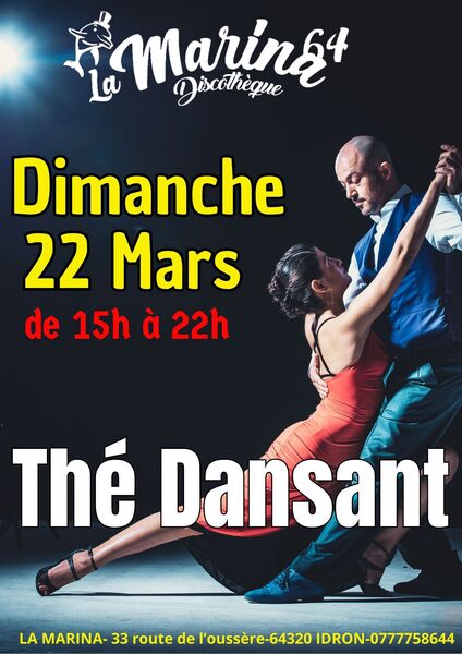 Date : Dimanche 22/03/2026 Horaires : 15H à 22H Tarifs : 17€ Organisateur : LA MARINA DISCOTHÈQUE Adresse de l'événement : 33 ROUTE DE L OUSSERE 64320 IDRON Danses pratiquées : Bachata, Danses de salon, Danses en ligne (Line dance), Danses rétro, Madison, Paso-doble, Rock, Rumba, Tango, Valse, Valse viennoise Référence de l'annonce : 64242 call06 09 71 79 04call06 09 71 79 04