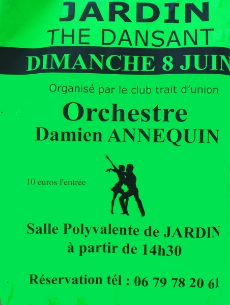 Date : 08/06/2025 (Événement passé) Horaires : 14h30 Tarifs : 10€ Organisateur : CLUB LE TRAIT D'UNION Adresse de l'événement : SALLE JEAN MONNET 38200 JARDIN Informations complémentaires : Animation : Orchestre Damien Annequin. Danses pratiquées : Danses de salon, Danses en ligne, Danses rétro Référence de l'annonce : 44651 call06 79 78 20 61