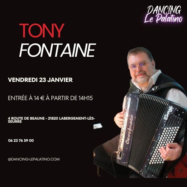 Date : Vendredi 23/01/2026 Horaires : 14h15 A 19h Tarifs : 14 euros Organisateur : LE PALATINO Adresse de l'événement : 4 ROUTE DE BEAUNE 21820 LABERGEMENT LES SEURRE Informations complémentaires : Tony fontaine au Palatino. Réservations conseillées au 0623765900 Danses pratiquées : Danses de salon Référence de l'annonce : 61978 call06 23 76 59 00