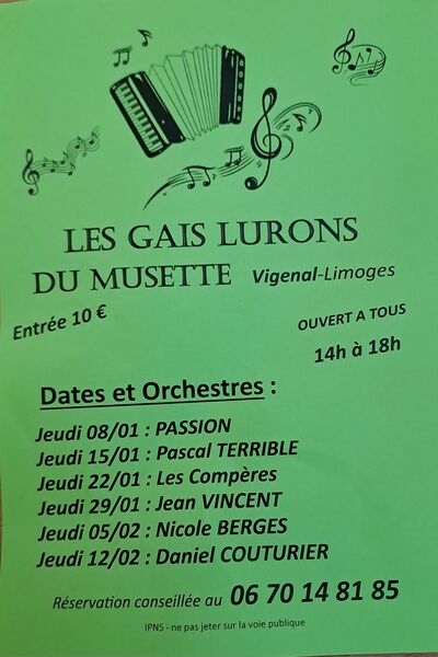 12/02/2026 : Animation "Daniel Couturier". Réservation conseillée. Ouvert à tous.