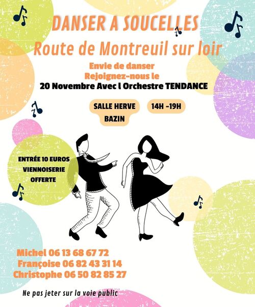 Date : Jeudi 20/11/2025 Horaires : 14H- 19 H Tarifs : 10 EUROS Organisateur : DANSER A SOUCELLES Adresse de l'événement : SALLE HERVÉ BAZIN ROUTE DE MONTREUIL SUR LOIR SOUCELLES 49140 LOIRE AUTHION Danses pratiquées : Danses de salon Référence de l'annonce : 53938 call06 13 68 67 72