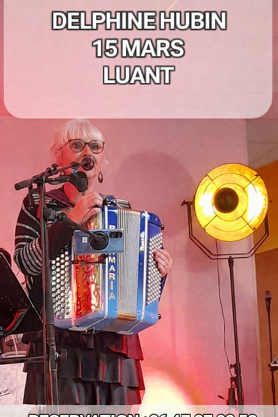 Date : Dimanche 15/03/2026 Adresse de l'événement : 36350 LUANT Informations complémentaires : Animation : Delphine Hubin, accordéoniste et chanteuse. Après-midi musicale et dansante ouverte à tous. Danses pratiquées : Danses de salon, Danses en ligne (Line dance), Danses rétro Référence de l'annonce : 61919 call06 45 37 03 53