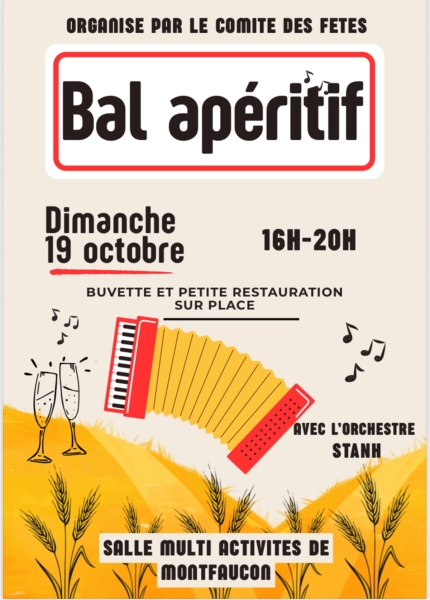 Date : Dimanche 19/10/2025 Horaires : 16h à 20h Organisateur : COMITÉ DES FÊTES DE MONTFAUCON Adresse de l'événement : SALLE MULTI-ACTIVITÉS 55270 MONTFAUCON D ARGONNE Informations complémentaires : Animation : Orchestre Stanh. Buvette et petite restauration sur place. Danses pratiquées : Danses de salon, Danses en ligne, Danses rétro Référence de l'annonce : 53468 call06 09 80 64 51