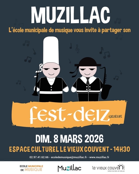Date : Dimanche 08/03/2026 Horaires : 14h30 Tarifs : Gratuit Organisateur : MAIRIE DE MUZILLAC, SERVICES ADMINISTRATIFS Adresse de l'événement : LE VIEUX COUVENT ESPACE CULTUREL DE MUZILLAC 56190 MUZILLAC Informations complémentaires : Événement organisé à l'issue d'un stage de musiques traditionnelles par les élèves et professeurs de l'école municipale de musique. Danses pratiquées : Danse bretonne Référence de l'annonce : 64453 call02 97 41 62 66