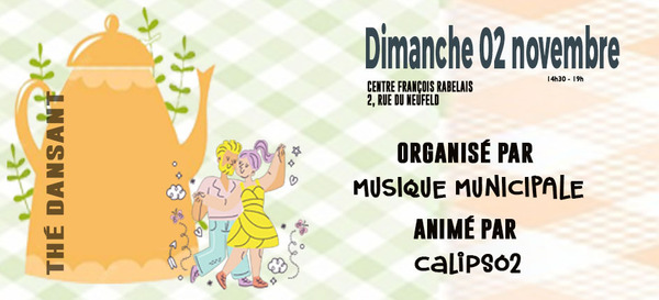 Date : Dimanche 02/11/2025 Horaires : 14h30-19h Organisateur : MUSIQUE MUNICIPALE Adresse de l'événement : CENTRE FRANÇOIS RABELAIS 2 RUE DU NEUFELD 67210 OBERNAI Informations complémentaires : Animation : Orchestre Calipso 2. Danses pratiquées : Danses de salon, Danses en ligne, Danses rétro Référence de l'annonce : 52043