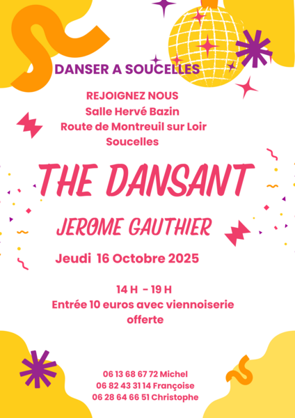 Date : Jeudi 16/10/2025 Horaires : 14h - 19h Tarifs : 10€ Organisateur : DANSER A SOUCELLES Adresse de l'événement : SALLE HERVE BAZIN ROUTE DE MONTREUIL 49140 RIVES DU LOIR EN ANJOU Informations complémentaires : Tarif 10euros avec viennoiserie offerte. Danses pratiquées : Danses de salon Référence de l'annonce : 52507 call06 82 43 31 14call06 13 68 67 72