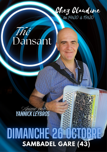 Date : Dimanche 26/10/2025 Horaires : 14h30 à 19h30 Organisateur : CHEZ CLAUDINE Adresse de l'événement : SALLE DES FÊTES DE SAMBADEL GARE 43160 SEMBADEL Informations complémentaires : Animation : Orchestre Yannick Leybros. Danses pratiquées : Danses de salon, Danses en ligne, Danses rétro, Samba Référence de l'annonce : 50583