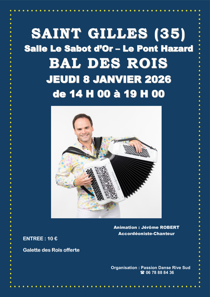 Date : Jeudi 08/01/2026 Horaires : 14h- 19 h Tarifs : 10€ Organisateur : PASSION DANSE RIVE SUD Adresse de l'événement : SALLE LE SABOT D'OR LE PONT HAZARD 35590 ST GILLES Informations complémentaires : Galette des Rois offerte Danses pratiquées : Danses de salon Référence de l'annonce : 58004 call06 78 88 84 36