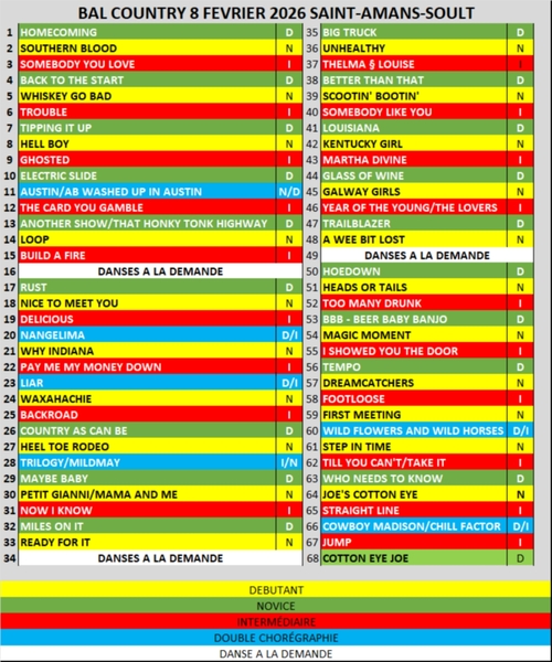 Date : Dimanche 08/02/2026 Horaires : 14h 18h Tarifs : gratuit Organisateur : COUNTRY THORÉ CANYON Adresse de l'événement : 6 RUE DU PONT VIEUX 81240 ST AMANS SOULT Danses pratiquées : Country Référence de l'annonce : 60768 call06 63 10 73 74