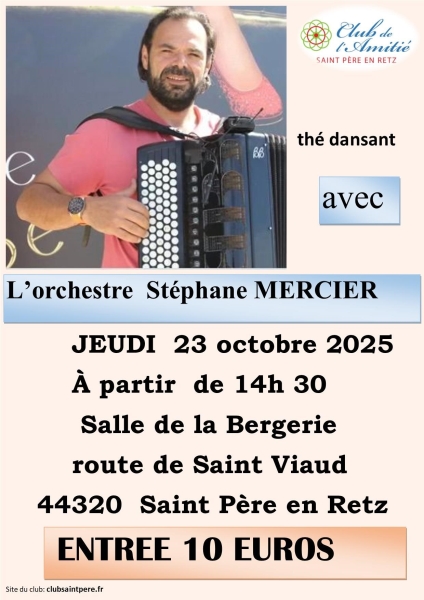Date : Jeudi 23/10/2025 Horaires : 14h30 à 19h30 Tarifs : 10€ Organisateur : CLUB DE L'AMITIÉ Adresse de l'événement : SALLE DE LA BERGERIE ROUTE DE SAINT-VIAUD 44320 ST PERE EN RETZ Informations complémentaires : Animation : Stéphane Mercier. Boisson et goûter compris. Danses pratiquées : Danses de salon, Danses en ligne, Danses rétro Référence de l'annonce : 53544 call06 68 98 57 25