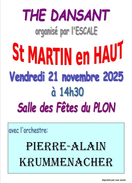 ST MARTIN EN HAUT (69850) Type : Après-midi dansant
