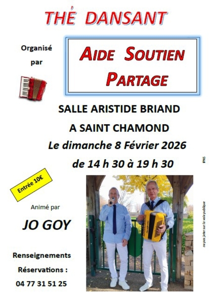 Date : 08/02/2026 (Événement passé) Horaires : 14h30 à 19h30 Tarifs : 10€ Organisateur : ASP AIDE SOUTIEN PARTAGE Adresse de l'événement : SALLE ARISTIDE-BRIAND AVENUE ANTOINE-PINAY 42400 ST CHAMOND Informations complémentaires : Animation : Orchestre Jo Goy. Réservation conseillée. Danses pratiquées : Danses de salon, Danses en ligne (Line dance), Danses rétro Référence de l'annonce : 62481 call07 77 05 70 35call04 77 31 51 25