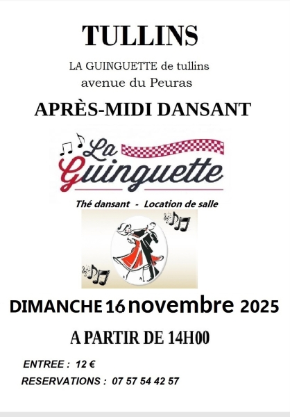 Date : Dimanche 16/11/2025 Horaires : 14h à 18h Tarifs : 12€ Organisateur : LA GUINGUETTE TULLINS Adresse de l'événement : AVENUE DU PEURAS 38210 TULLINS Informations complémentaires : 1 boisson incluse jusqu'à 2,50€ et goûter offerts. Nouvelle salle avec parquet. Ambiance familiale. Grand parking. Accès adapté aux personnes à mobilité réduite. Danses pratiquées : Danses de salon, Danses en ligne, Danses rétro Référence de l'annonce : 55009 call07 57 54 42 57