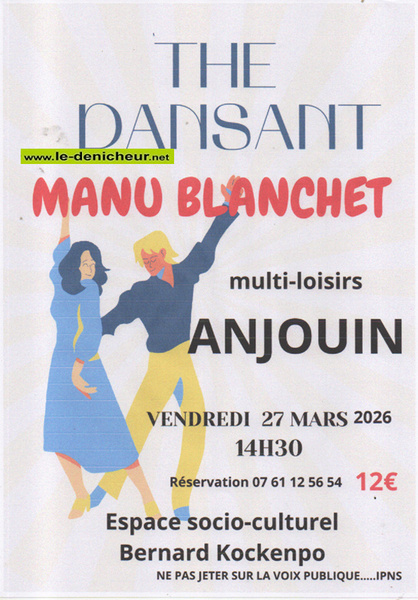 Date : Vendredi 27/03/2026 Horaires : 14h30 Tarifs : 12€ Organisateur : MULTI-LOISIRS Adresse de l'événement : ESPACE SOCIO-CULTUREL BERNARD KOCKENPO 36210 VAL FOUZON Informations complémentaires : Animation : Manu Blanchet. Danses pratiquées : Danses de salon, Danses en ligne (Line dance), Danses rétro Référence de l'annonce : 64316 call07 61 12 56 54