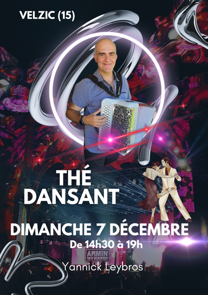 Date : Dimanche 07/12/2025 Horaires : 14h30 à 19h Adresse de l'événement : SALLE DES FÊTES 15590 VELZIC Informations complémentaires : Animation : Orchestre Yannick Leybros. Danses pratiquées : Danses de salon, Danses en ligne, Danses rétro Référence de l'annonce : 53243
