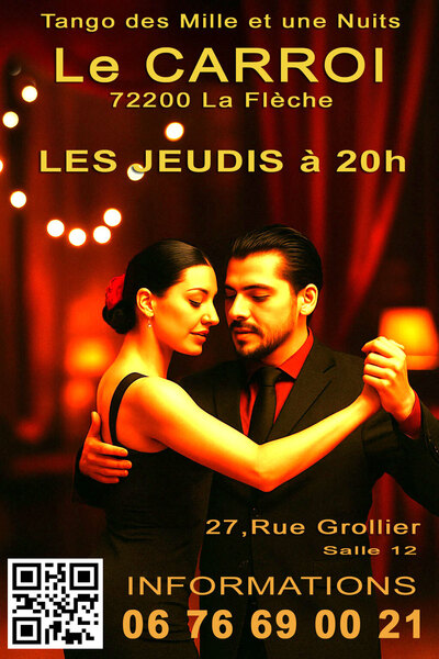 Dates : Jeudi 11/12/2025, Jeudi 18/12/2025 Horaires : 19h50 Tarifs : gratuits Organisateur : TANGO DES MILLE ET UNE NUITS Adresse de l'événement : 27, RUE GROLLIER SALLE 12 72200 LA FLECHE Informations complémentaires : Bonjour à vous. Venez découvrir gratuitement le tango argentin