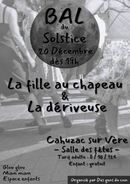 Date : Samedi 20/12/2025 Horaires : 19h Tarifs : 8€ (solidaire) / 10€ (équilibre) / 12€ (soutien) / gratuit pour les enfants Organisateur : DES GENS DU COIN Adresse de l'événement : SALLE DES FÊTES 6 PLACE DE LA POSTE 81140 CAHUZAC SUR VERE Informations complémentaires : Animation : La fille au chapeau et La dériveuse. Petite restauration et buvette. Espace enfants. Salle des fêtes. Danses pratiquées : Danse folklorique Référence de l'annonce : 56783