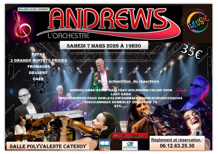 Date : Samedi 07/03/2026 Horaires : 19h30 à 02h Tarifs : 35€ Organisateur : BILLARD CLUB CATENOY Adresse de l'événement : SALLE POLYVALENTE 60840 CATENOY Danses pratiquées : Disco, Madison, Rock Référence de l'annonce : 63832 call06 12 63 25 30