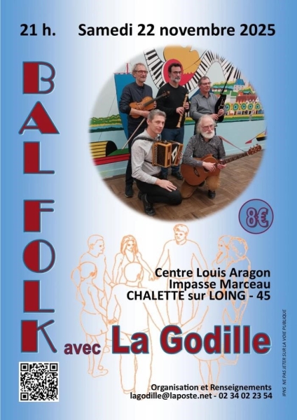 Date : Samedi 22/11/2025 Horaires : 21h Tarifs : 8€ Organisateur : LA GODILLE Adresse de l'événement : CENTRE LOUIS ARAGON IMPASSE MARCEAU 45120 CHALETTE SUR LOING Informations complémentaires : Animation : La Godille. Danses pratiquées : Danse folklorique Référence de l'annonce : 54491 call02 34 02 23 54