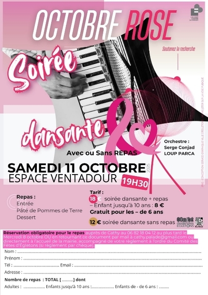 Date : Samedi 11/10/2025 Horaires : 19h30 Tarifs : 18€ soirée dansante + repas, 12€ sans repas, 8€ enfant jusqu'à 10 ans, gratuit -6 ans Organisateur : COMITÉ DES FÊTES D'ÉGLETONS Adresse de l'événement : ESPACE VENTADOUR 19300 EGLETONS Danses pratiquées : Danses de salon, Danses en ligne, Danses rétro, Variété Référence de l'annonce : 51869 call06 82 81 04 12