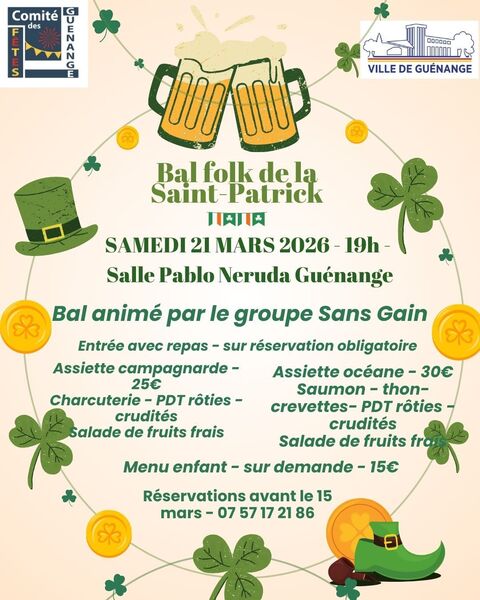 Date : Samedi 21/03/2026 Horaires : 20h Tarifs : à partir de 25€ Organisateur : COMITÉ DES FÊTES DE GUENANGE Adresse de l'événement : SALLE PABLO NERUDA PLACE DE L'HÔTEL DE VILLE 57310 GUENANGE Informations complémentaires : Soirée animée par le groupe SANS GAIN