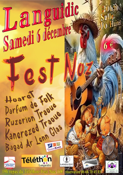 Date : 06/12/2025 (Événement passé) Horaires : 20h30 Tarifs : 6€ Fest-Noz seul, 13€ avec repas Organisateur : COMITÉ TÉLÉTHON LANGUIDIC Adresse de l'événement : SALLE JO HUITEL 1 RUE ANNE-DE-BRETAGNE 56440 LANGUIDIC Informations complémentaires : Fest-Noz organisé au profit duTéléthon