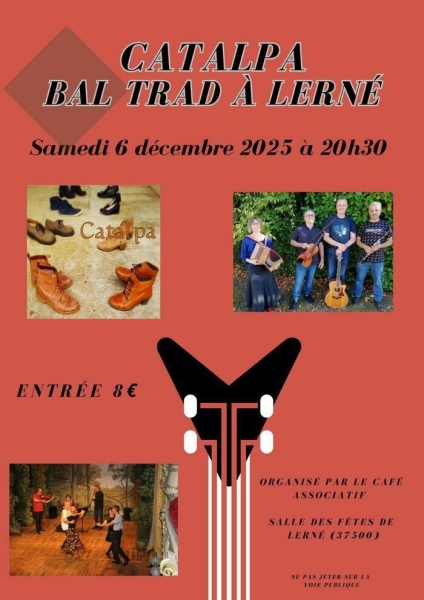 Date : 06/12/2025 (Événement passé) Horaires : 20h30 Tarifs : 8€ Organisateur : LE CAFÉ ASSOCIATIF Adresse de l'événement : SALLE DES FÊTES PLACE DE LA MAIRIE 37500 LERNE Informations complémentaires : Animation : Catalpa. Danses pratiquées : Danse folklorique Référence de l'annonce : 55999
