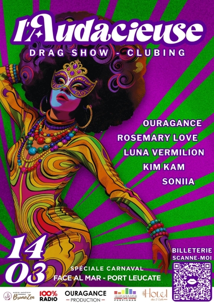 Date : Samedi 14/03/2026 Horaires : 19h à 23h59 Tarifs : 15€ Organisateur : OURAGANCE PRODUCTION Adresse de l'événement : COMPLEXE FACE AL MAR PLACE DE FISSOVENT 11370 LEUCATE Informations complémentaires : Animation : DJ Steph, Ouragance, Rosemary Love, Kim Kam, Soniia, Luna Vermilion. Parking gratuit. Bar et restauration sur place. Billetterie sur place possible (CB ou espèces). Thème Carnaval. Danses pratiquées : Disco Référence de l'annonce : 63982