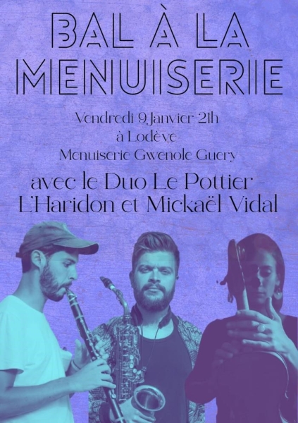 Date : Vendredi 09/01/2026 Horaires : 19h à 23h Tarifs : Participation au chapeau Organisateur : BALALATELIER Adresse de l'événement : MENUISERIE GWENOLE GUERY ROUTE DE MONTPELLIER 34700 LODEVE Informations complémentaires : Animation : Duo Le Pottier-L'Haridon et Mickaël Vidal. Parking limité. Parquet. Galettes de sarrasin préparées sur place, chacun apporte de quoi les garnir. Gingembrette à prix libre. Danses pratiquées : Danse bretonne Référence de l'annonce : 61102