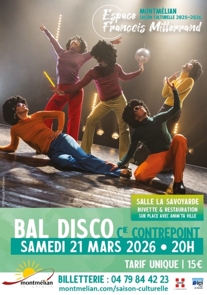 Date : Samedi 21/03/2026 Horaires : 20h Tarifs : 15€ Organisateur : MAIRIE DE MONTMÉLIAN-ESPACE FRANÇOIS MITTERRAND Adresse de l'événement : ESPACE FRANÇOIS MITTERRAND 2 RUE MARIUS BABOULAZ 73800 MONTMELIAN Informations complémentaires : Animation : Compagnie Contrepoint. Bal participatif Disco années 70. Salle La Savoyarde. Tout public. Ouverture des réservations à compter du 19 août 2025. Accès adapté aux personnes à mobilité réduite. Buvette et restauration sur place avec Anima ta ville. Danses pratiquées : Danses de salon, Danses en ligne (Line dance), Danses rétro, Disco Référence de l'annonce : 64020 call04 79 84 07 31call04 79 84 42 23