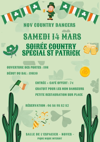 Date : Samedi 14/03/2026 Horaires : 19h30 Tarifs : 7€ (entrée + café offert). Gratuit pour les non-danseurs. Organisateur : NOV'COUNTRY DANCERS Adresse de l'événement : SALLE DE L'ESPACIER AVENUE DU GÉNÉRAL-DE-GAULLE 13550 NOVES Danses pratiquées : Country Référence de l'annonce : 64484 call06 86 98 82 82