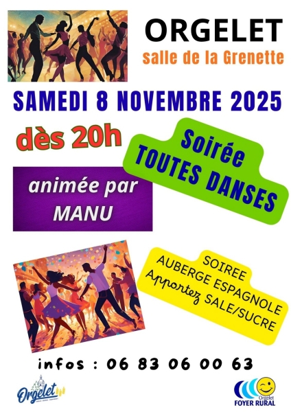 Date : Samedi 08/11/2025 Horaires : de 20h à 23h55 Tarifs : 10€ Organisateur : FOYER RURAL ORGELET Adresse de l'événement : SALLE DE LA GRENETTE PLACE DU BOURG DE MERLIA 39270 ORGELET Informations complémentaires : Animation : Manu. Soirée auberge espagnole. Apportez du salé et du sucré. Petite collation partagée entre les danses. Prévoir vaisselle et boisson. Accès adapté aux personnes à mobilité réduite. Danses pratiquées : Danses de salon, Danses latino, Rock Référence de l'annonce : 54699 call06 83 06 00 63