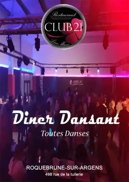 Date : Vendredi 06/02/2026 Horaires : 19h Tarifs : 25€ Organisateur : CLUB 21 Adresse de l'événement : CLUB 21 498 RUE DE LA TUILERIE 83380 ROQUEBRUNE SUR ARGENS Informations complémentaires : Dîner dansant. Toutes danses. Ambiance conviviale avec repas. Live music. Danses pratiquées : Danses de salon, Danses en ligne (Line dance), Danses latino, Danses rétro Référence de l'annonce : 61849
