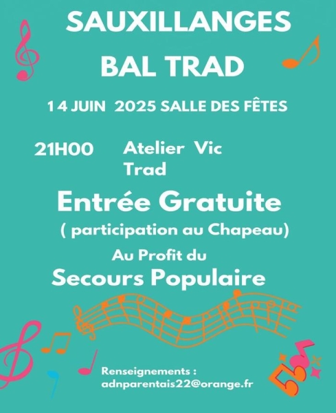 Date : 14/06/2025 (Événement passé) Horaires : 21h Tarifs : Entrée libre, participation au chapeau. Organisateur : SECOURS POPULAIRE Adresse de l'événement : SALLE POLYVALENTE SAUXILLANGES 17 AVENUE GIROD POUZOL 63490 SAUXILLANGES Informations complémentaires : Animation : Atelier Trad de l'école de Musique de Vic-le-Comte. Tous les bénéfices seront pour le Secours Populaire. Danses pratiquées : Danse folklorique Référence de l'annonce : 45330