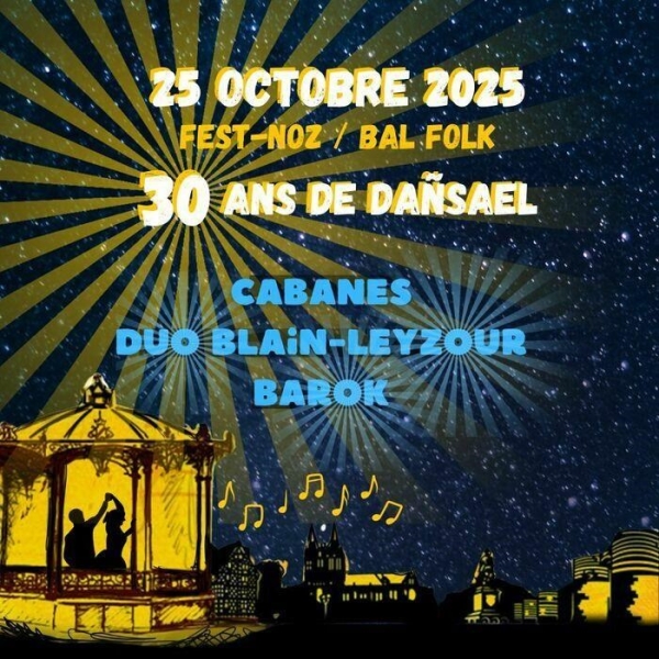 Date : Samedi 25/10/2025 Horaires : 14h30-00h30 Tarifs : Bal : 12€ - Stage : 10€ - Réduit : 10€ - Enfants -12 ans : gratuit - Couplé stage + b Organisateur : DAÑSAEL Adresse de l'événement : SALLE DE LA GEMMETRIE RUE DE LA GEMMETRIE 49124 ST BARTHELEMY D ANJOU Informations complémentaires : Animation : Cabanes, Duo Blain-Leyzour, Barok