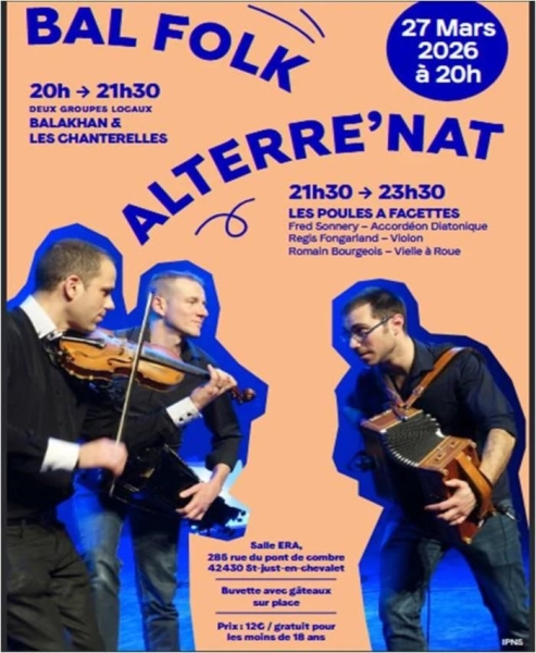 Dates : Vendredi 27/03/2026, Samedi 28/03/2026 Horaires : 20h à 23h30 Tarifs : 12€ / gratuit pour les moins de 18 ans Organisateur : ALTERRENAT Adresse de l'événement : SALLE ERA 288 RUE DU PONT DE COMBRE 42430 ST JUST EN CHEVALET Informations complémentaires :